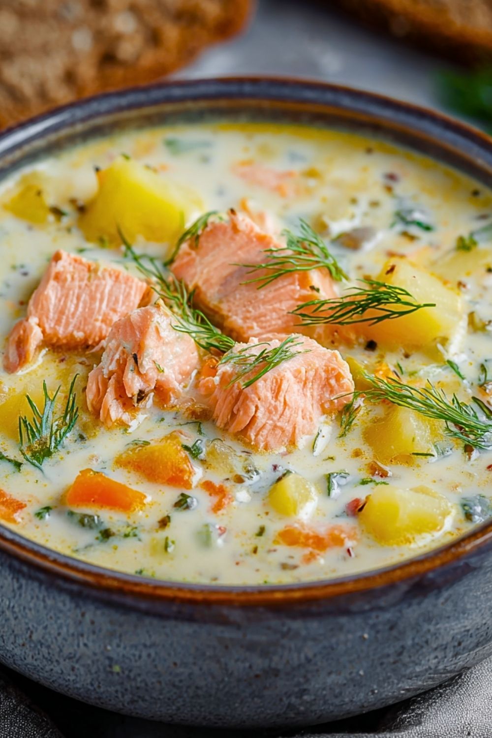 Keywords: salmon chowder, creamy soup, easy dinner, quick meals, comfort food, healthy soup, fish chowder, dinner ideas