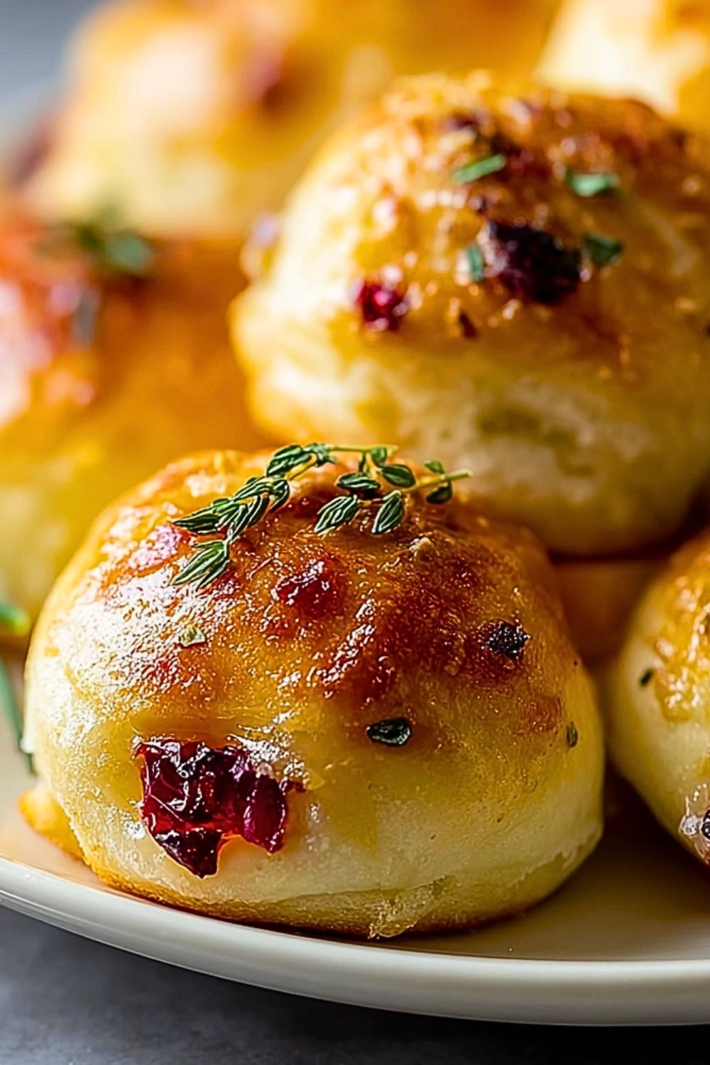 Allow the Cranberry Brie Bombs to cool in the pan for about 5 minutes before gently removing them. Serve warm for the best gooey cheese experience. Garnish with a bit more fresh thyme for visual appeal.
