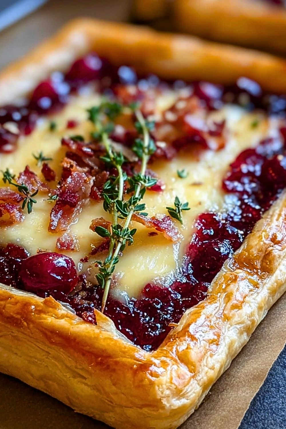 Keywords: holiday appetizer, cranberry brie tart, easy recipe, puff pastry, quick snack, food ideas, dinner ideas, breakfast ideas