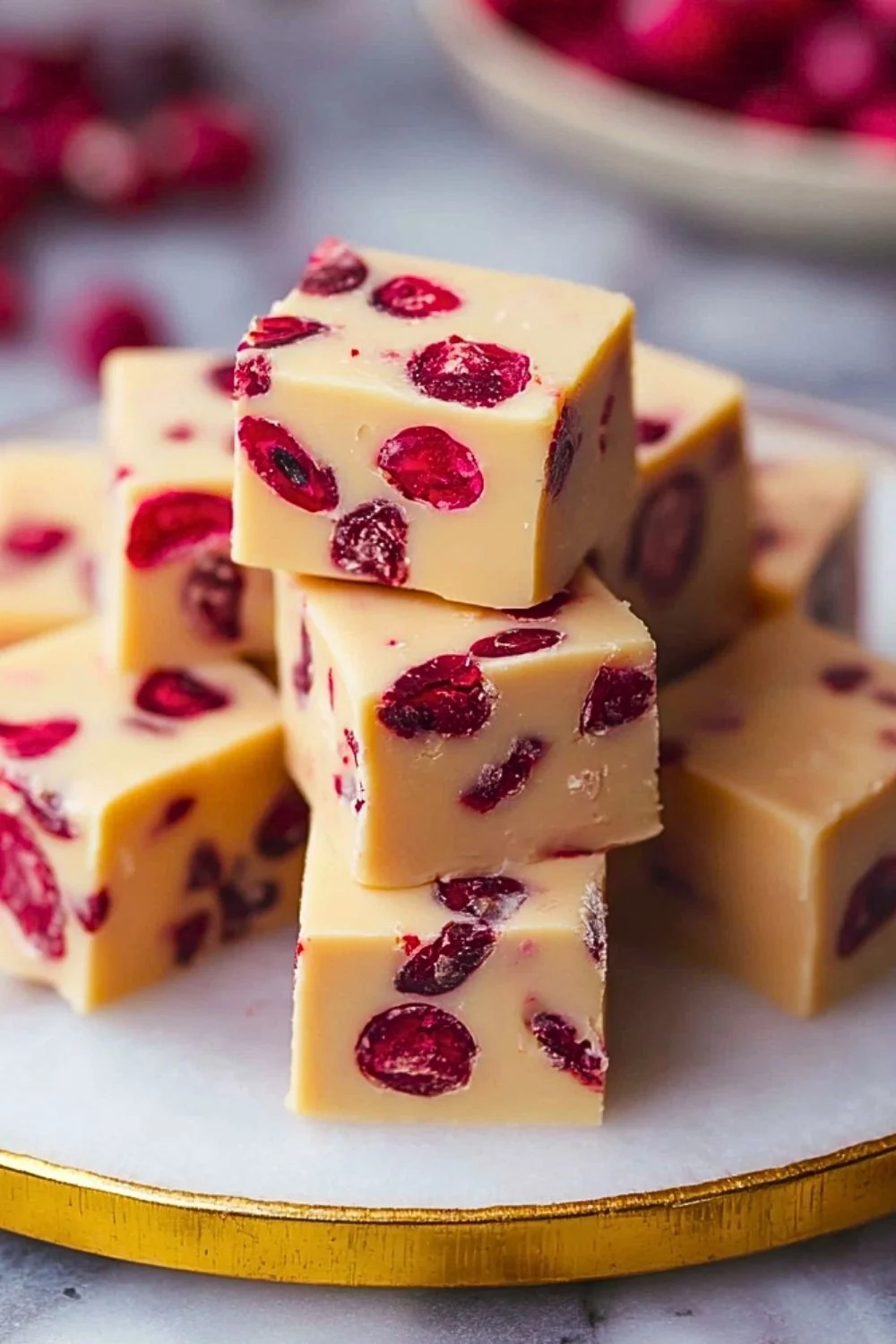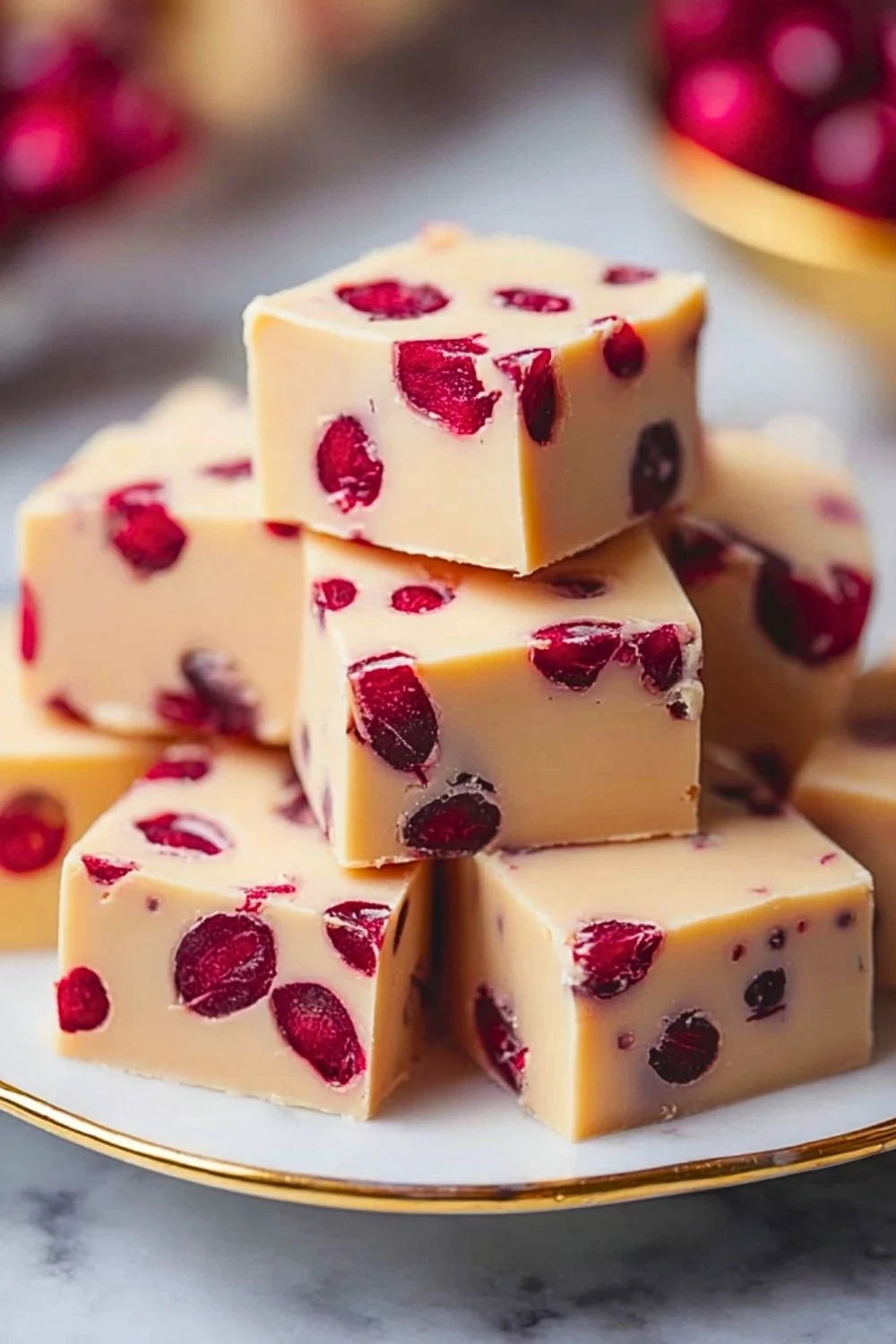 Keywords: cranberry fudge, easy dessert, holiday treat, quick fudge, white chocolate fudge, food ideas
