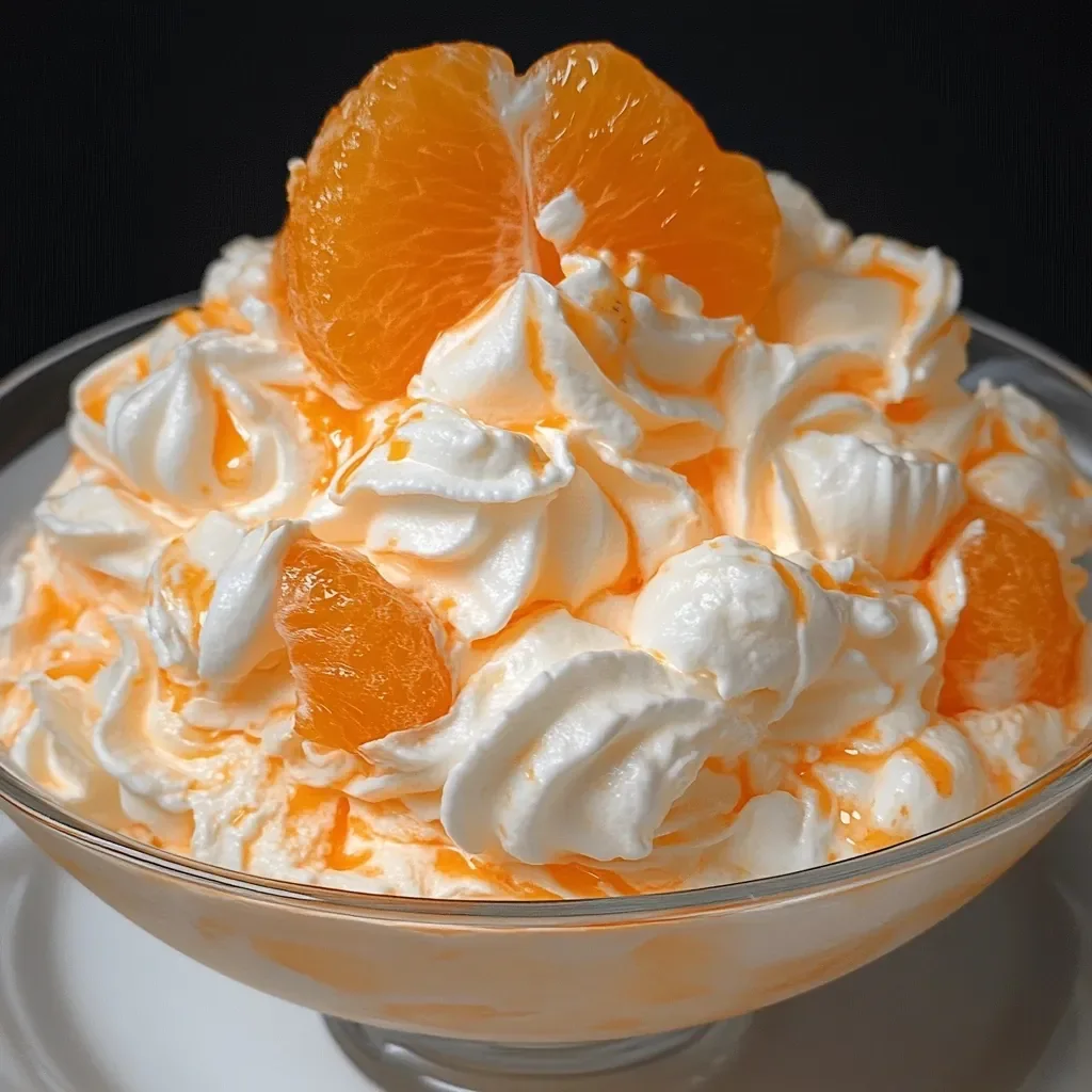 This Creamsicle Orange Fluff is a light and creamy dessert bursting with citrus flavor. Perfect for potlucks, holidays, or summer gatherings, this no-bake treat combines juicy mandarin oranges, whipped cream, and marshmallows for a refreshing dessert that everyone will love.