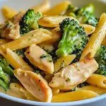 I love using penne because its tube-like shape catches all the creamy sauce and little bits of chicken and broccoli—it’s just made for this kind of dish. But honestly, you’ve got some flexibility. Rigatoni, ziti, or even rotini work beautifully if that’s what you’ve got in the pantry. The key is to use a pasta that has some grooves or structure so that the sauce has something to cling to. Avoid delicate pastas like angel hair or anything too thin—they’ll get lost in the creaminess and won’t hold up to the heartier ingredients.
