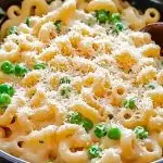 Creamy Cavatappi is the kind of dish that wraps you in comfort with every forkful. This pasta recipe brings together perfectly cooked cavatappi noodles coated in a velvety, cheesy cream sauce that’s rich yet balanced. The playful spiral shape of the cavatappi holds onto the sauce beautifully, ensuring each bite is just as satisfying as the last. A hint of garlic, a touch of nutmeg, and pops of green peas throughout make it more than just a cheesy pasta—it’s a full, flavor-packed experience.
