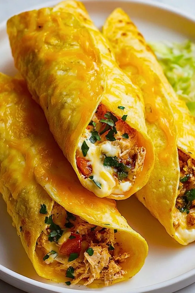 These tacos bake beautifully in just 18 to 20 minutes at 375°F (190°C). You’ll know they’re ready when the cheese on top is melted and bubbling, and the edges of the tortillas are just starting to crisp and turn golden. Let them rest for a few minutes after baking so the filling sets slightly and is easier to serve.