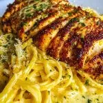 The beauty of this dish lies in its simplicity—juicy chicken breasts seasoned to perfection, seared until crispy on the outside and tender on the inside, served alongside rotini pasta drenched in a velvety, garlicky parmesan sauce. It’s rich but not overwhelming, satisfying without being heavy, and it comes together faster than you’d expect.