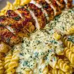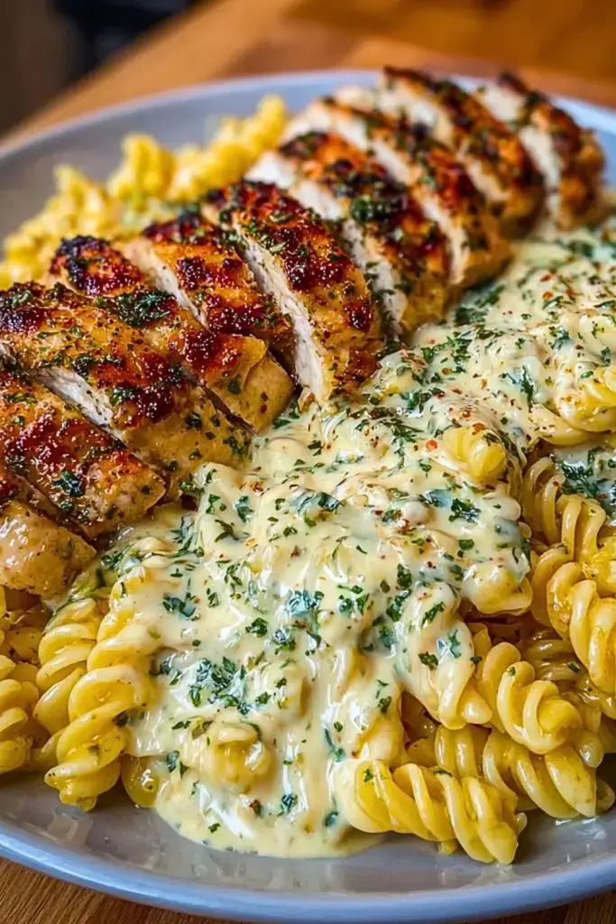Golden-seared chicken breasts seasoned to perfection meet a dreamy, velvety garlic parmesan sauce in this restaurant-quality dish made right at home. Paired with spiraled pasta coated in a rich, cheesy blend and sprinkled with herbs and red pepper flakes, this meal brings serious comfort food energy without demanding hours in the kitchen. The chicken is tender and juicy, while the pasta clings to a thick, creamy sauce that feels indulgent and satisfying with every bite.
