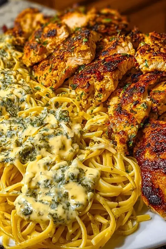 This dish is comfort food elevated — perfect for when you want something that tastes like it came from your favorite Italian restaurant. The chicken is deeply seasoned and pan-seared until golden, locking in the juices while adding texture. The linguine is a creamy dream, with a cheese-forward sauce that’s rich without being heavy.