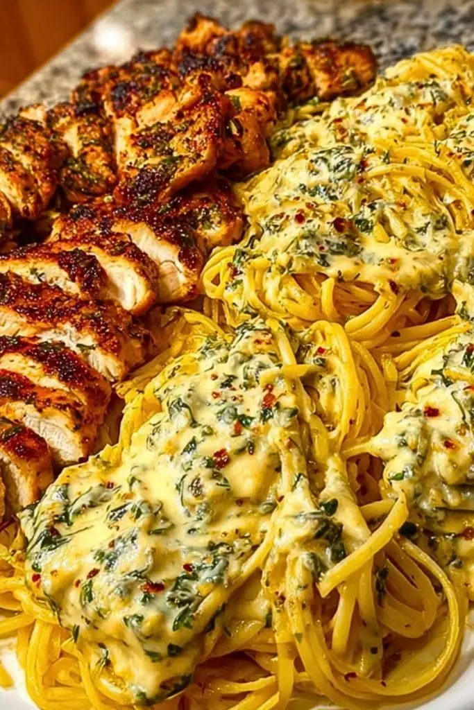 Creamy Garlic Parmesan Chicken with Cheesy Linguine is everything I love in a dinner: satisfying, flavorful, and just a little luxurious without being fussy. It strikes that perfect balance between restaurant-quality and home-cooked comfort. Whether you're making it for someone special or just for yourself (because you deserve it), this recipe is bound to become a go-to. Try it once, and I promise — you’ll crave it again.