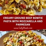 Creamy Ground Beef Bowtie Pasta with Mozzarella and Parmesan