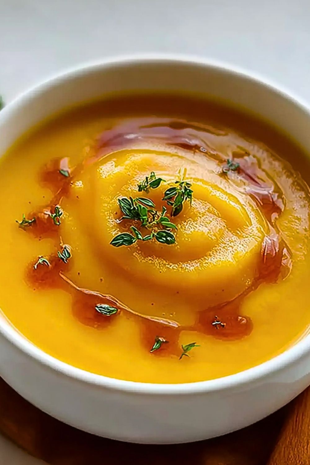 Taste the soup and adjust salt and pepper as needed. If you prefer a touch more sweetness, drizzle in a little extra honey. Garnish with fresh thyme or a swirl of cream before serving.