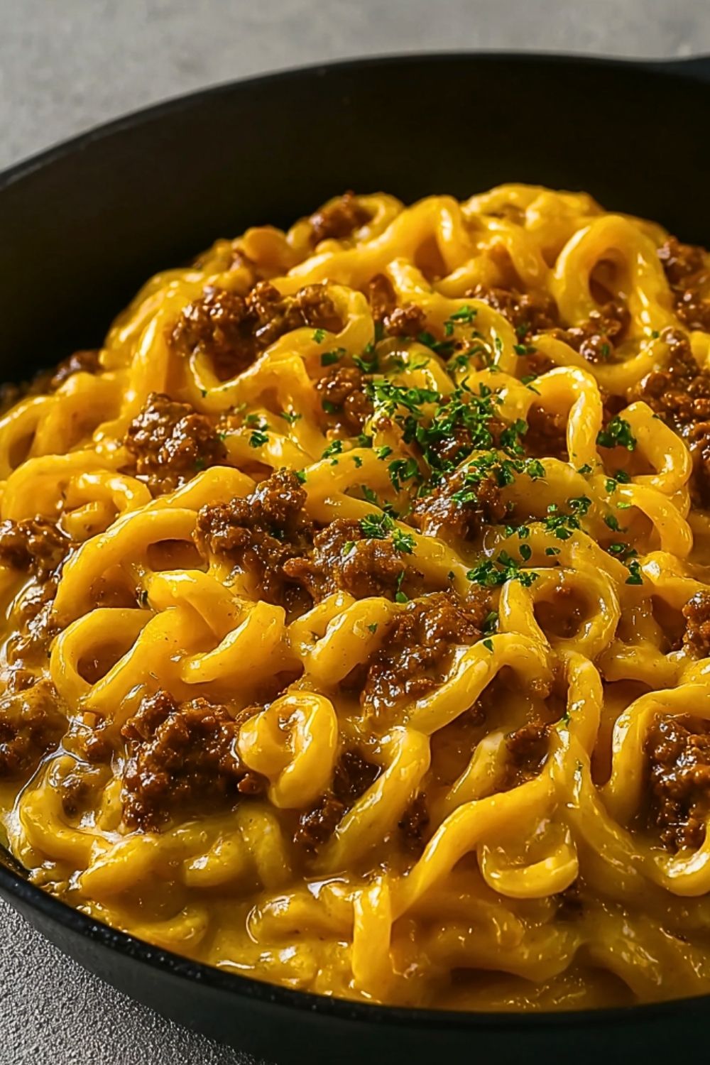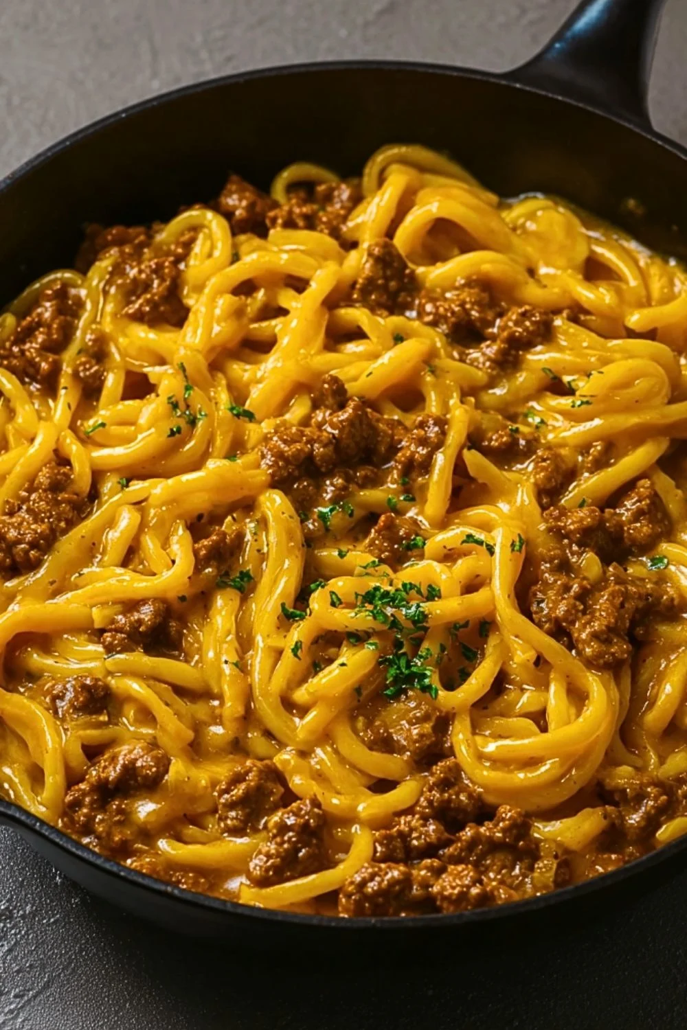 Keywords: easy dinner, creamy pasta, one-pot meal, comfort food, ground beef recipe