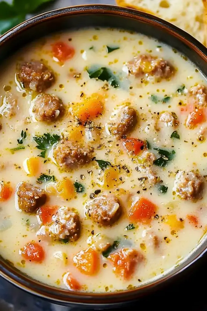 This soup isn’t just another creamy recipe—it’s a flavor-packed fusion of rustic Italian soul food and modern comfort. The gentle kick of the sausage, the softness of the potatoes, the sweetness of the carrots, and the mellow richness of cheese work together to create a symphony in your mouth. Whether it’s served as a main dish or a starter for a larger Italian feast, this soup is sure to become a favorite in your rotation.