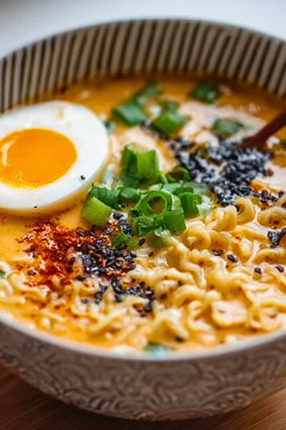 Use fresh green onions for a bright crunch and contrast to the creamy broth. If you prefer a deeper flavor, toast your sesame seeds lightly before sprinkling them on top. For a soft-boiled egg with a gooey center, boil for exactly 6–7 minutes and place immediately in an ice bath to stop cooking. Don’t overcook the noodles—they should remain slightly springy to balance the creaminess of the soup. Finally, add the creamy element (milk, cream, or cheese) after removing the pot from heat to prevent curdling or separation.