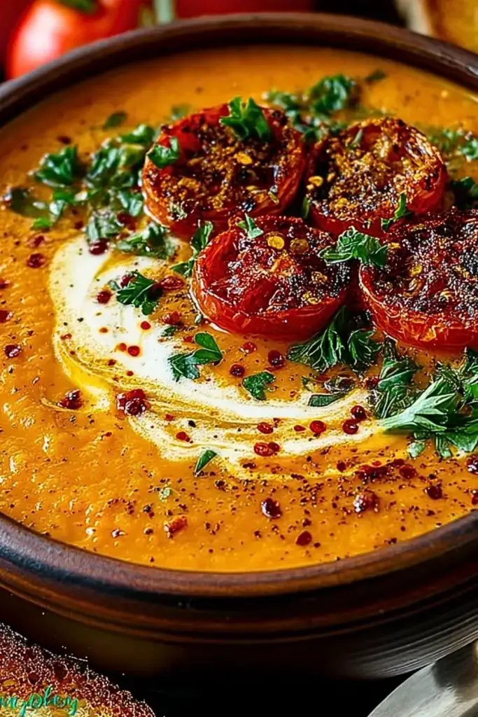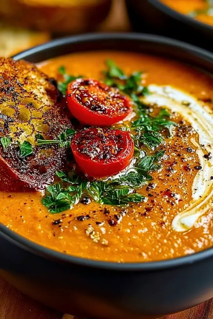 Get ready to fall in love with the bold, cozy flavors of Creamy Roasted Garlic Tomato Soup! This easy recipe transforms simple ingredients like ripe tomatoes, fresh garlic, and silky cream into a soul-warming bowl of comfort. Perfect for a quick lunch, easy dinner, or healthy snack, this recipe fits right into your list of breakfast ideas, dinner ideas, easy recipes, and even comforting food ideas for chilly days. Roasting the tomatoes and garlic creates a rich, smoky sweetness, while a swirl of cream adds a luxurious touch that makes every bite unforgettable. It's the ultimate bowl of love — warm, creamy, and simply irresistible!