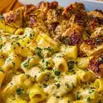 Golden-seared chicken meets rich, cheesy pasta in this irresistible Creamy Velveeta Chicken Rigatoni with Mozzarella Garlic Sauce. The dish strikes a perfect balance—juicy, seasoned chicken slices are nestled next to al dente rigatoni smothered in a velvety Velveeta and mozzarella sauce infused with garlic and herbs. It’s a comforting, restaurant-quality meal you can whip up right at home in under an hour.