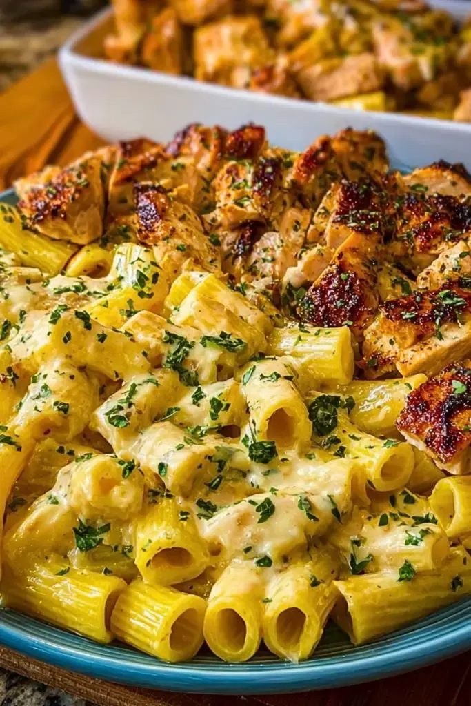 If you're craving a cozy and satisfying dinner idea that combines cheesy comfort with bold flavor, this Creamy Velveeta Chicken Rigatoni with Mozzarella Garlic Sauce is your new go-to. Perfect for weeknight meals, this easy recipe layers juicy seasoned chicken over tender rigatoni pasta coated in a rich, garlicky cheese sauce made with Velveeta and mozzarella. It's a quick dinner, indulgent comfort food, and an easy crowd-pleaser rolled into one. From simple food ideas to hearty dinner recipes, this dish checks every box for a warm, satisfying meal.