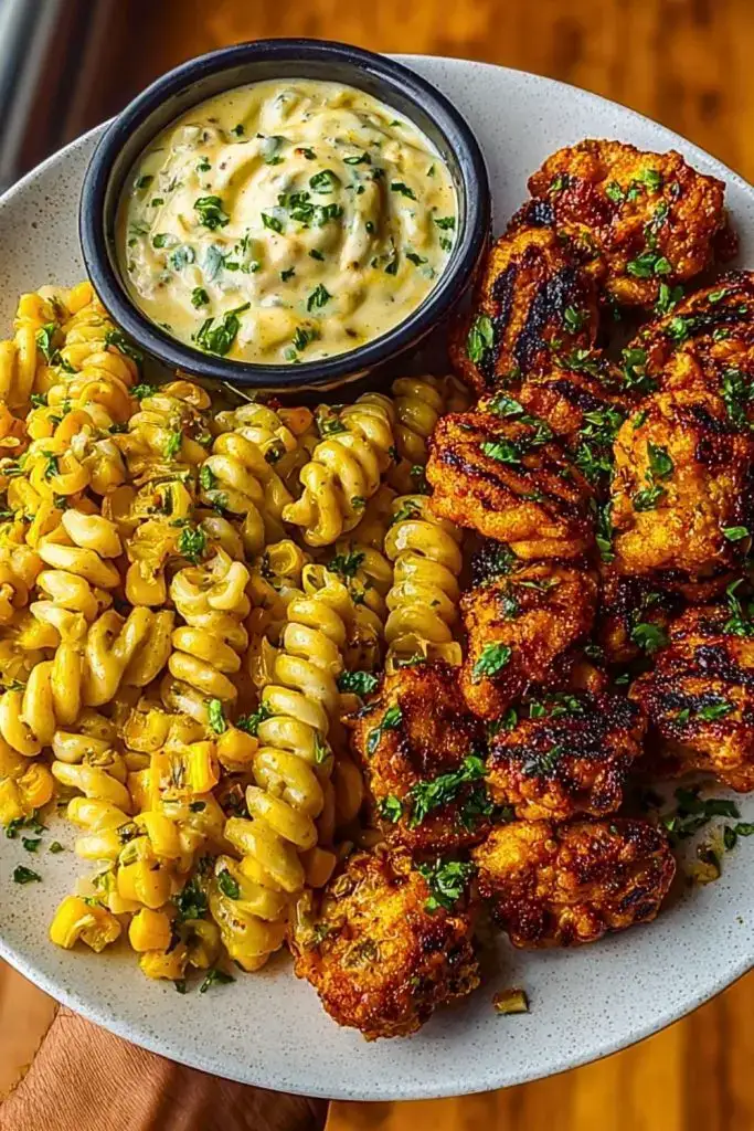 Crispy Chicken Bites & Blackened Cajun Alfredo with Roasted Corn Twists is a bold and comforting dish that brings together smoky, seasoned chicken and rich, creamy Alfredo pasta. This easy dinner idea features juicy, blackened chicken bites pan-seared to perfection, paired with twisted pasta coated in a flavorful Cajun cream sauce and sweet roasted corn. It’s a great food idea for quick weeknight meals or indulgent weekend dinners, combining the best of spice, crunch, and comfort. Whether you're looking for a quick dinner, spicy comfort food, or a new twist on Alfredo, this recipe delivers big flavor in under an hour.