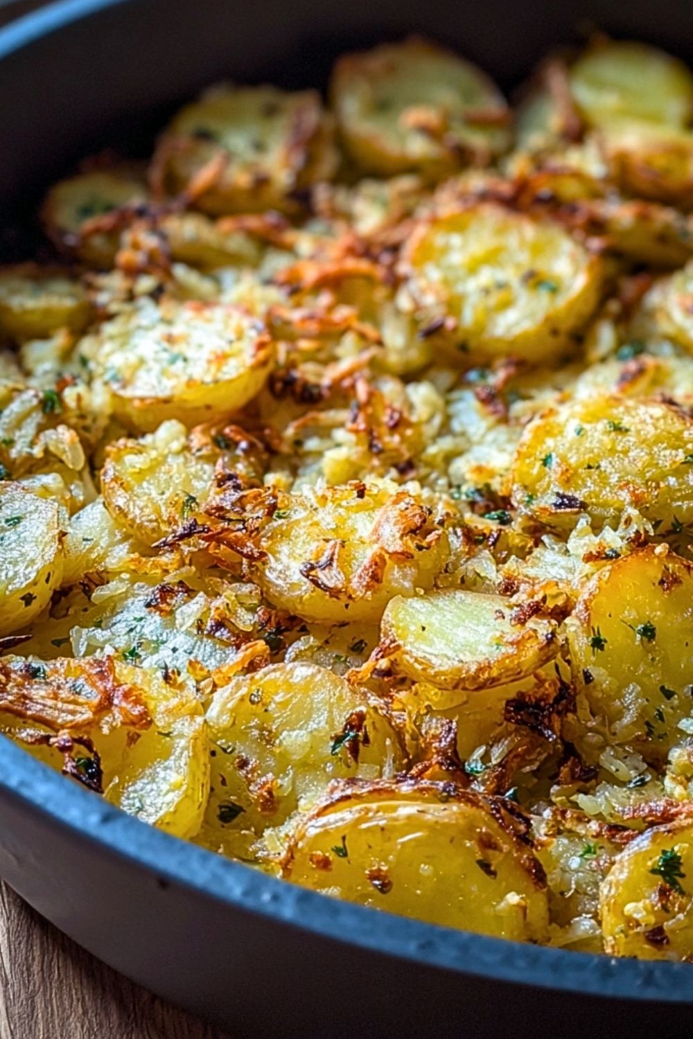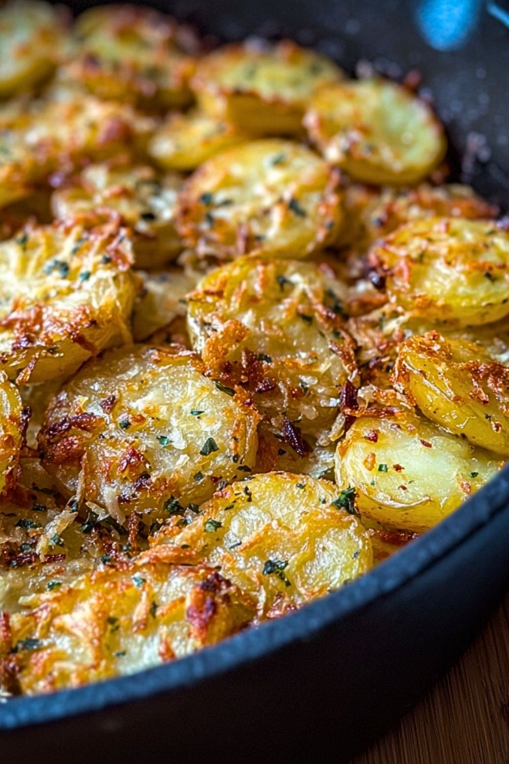 I’ve tested countless versions of crispy potatoes, but nothing hits quite like the crackling edges and buttery centers you get from cooking them in a hot skillet. The garlic infuses into the oil, the herbs coat every slice, and the cheese crisps up into an irresistible golden crust. Whether you're pairing it with a roast or enjoying it solo with a dollop of sour cream, this one always satisfies.