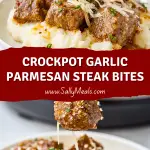 Keywords: garlic parmesan steak bites, crockpot steak recipe, easy dinner ideas, slow cooker beef, creamy garlic sauce