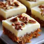 These Decadent Carrot Cake Bars with Cream Cheese Frosting are the perfect combination of moist, spiced cake and creamy, tangy frosting. They’re easy to prepare and make an excellent treat for gatherings, parties, or just a cozy dessert at home. The vibrant carrots, crunchy pecans, and rich frosting create an irresistible dessert that’s sure to be a crowd-pleaser.