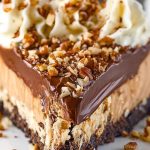 - Make sure the ganache is not too hot when pouring over the pie, or it may melt the cream layer.
