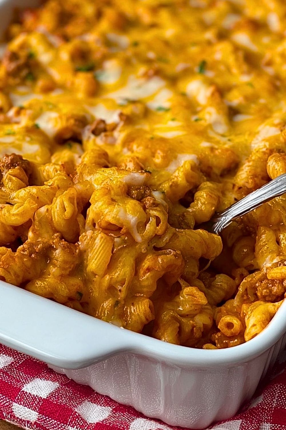 Cook the pasta just until al dente, as it will continue to cook in the oven and absorb some of the sauce. Be sure to drain excess grease from the cooked beef to avoid a greasy casserole. When layering the casserole, reserve a generous amount of cheese for the top to get that golden, bubbly finish. If you want to boost flavor, consider adding a dash of Worcestershire sauce or a spoonful of Dijon mustard to the meat mixture. Let the casserole rest for about 5–10 minutes before serving so the layers can set and the flavors meld beautifully.