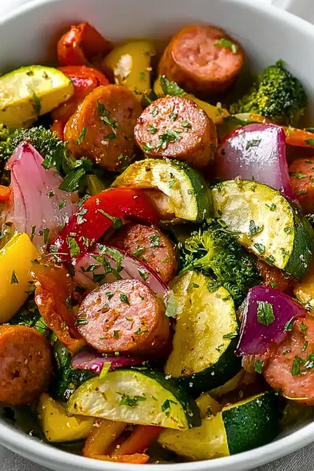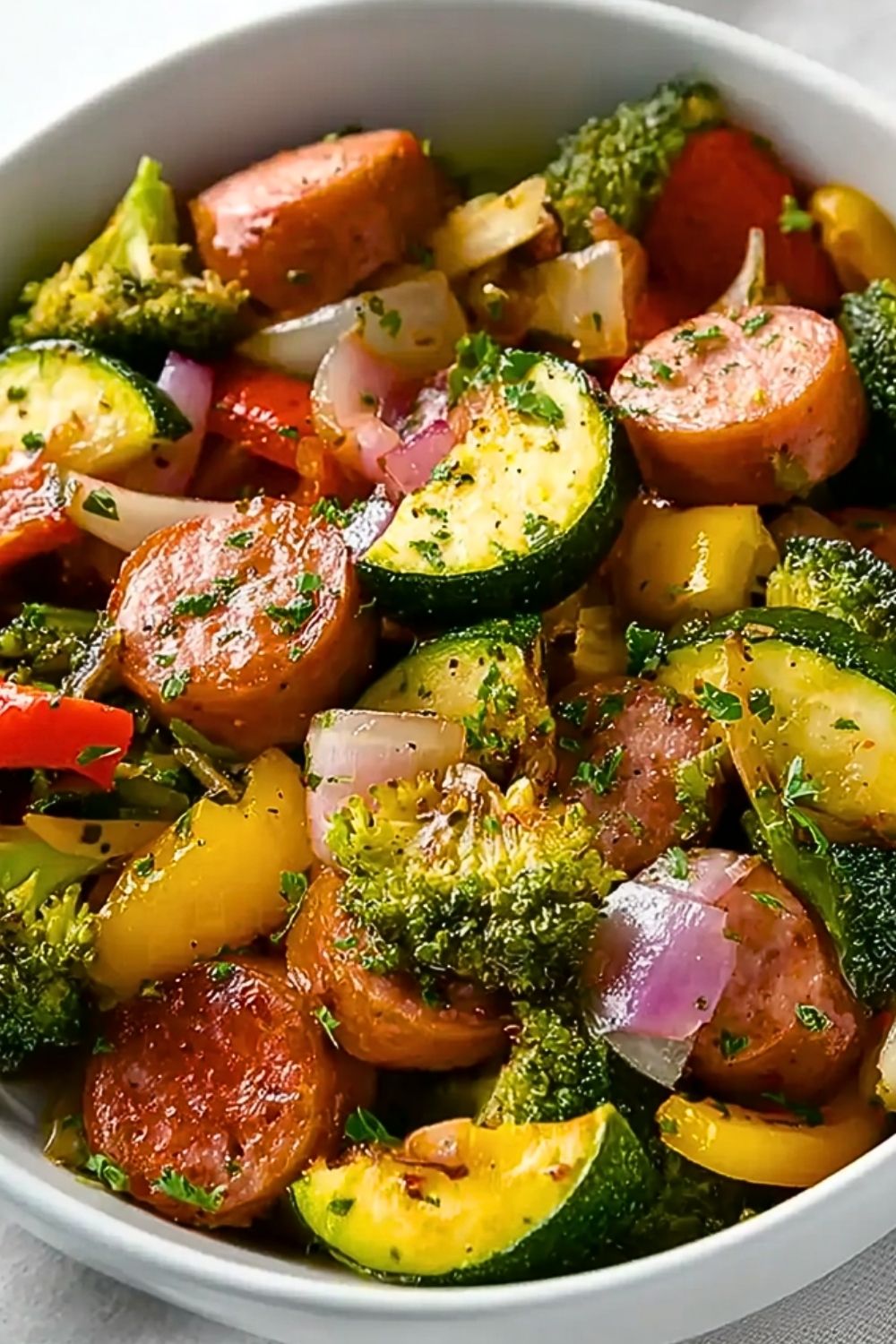 This recipe is incredibly flexible—feel free to swap in vegetables you have on hand like mushrooms, carrots, asparagus, or cherry tomatoes. You can also use turkey sausage or plant-based sausage to suit dietary preferences. To make it a more filling meal, serve it over grains like couscous, brown rice, or even pasta. For a low-carb option, pair it with cauliflower rice or a simple side salad.