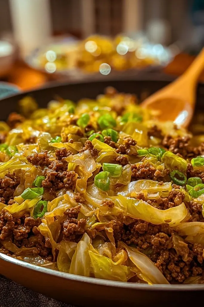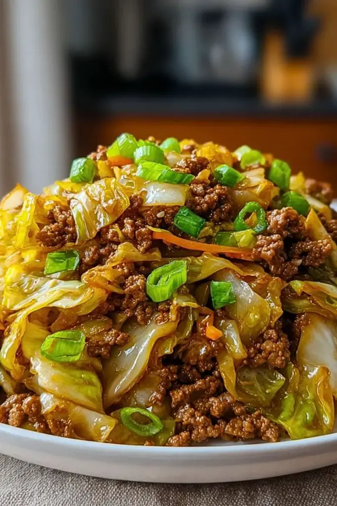 A fast, savory stir fry featuring ground beef, tender cabbage, and a flavorful soy-based sauce. Perfect for busy weeknights, it delivers bold flavor in under 30 minutes and works well for meal prep.