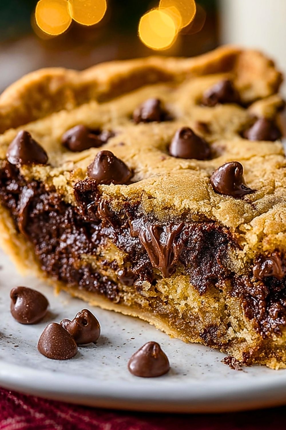 The texture is unbeatable: gooey, fudgy chocolate chip cookie on the inside with a lightly crisped, buttery crust on the outside. It’s my go-to when I need a crowd-pleaser without much fuss. Whether you’re hosting a holiday dinner, a birthday, or just craving something rich and nostalgic, this dessert never lets me down.