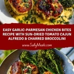 Easy Garlic-Parmesan Chicken Bites Recipe with Sun-Dried Tomato Cajun Alfredo & Charred Broccolini
