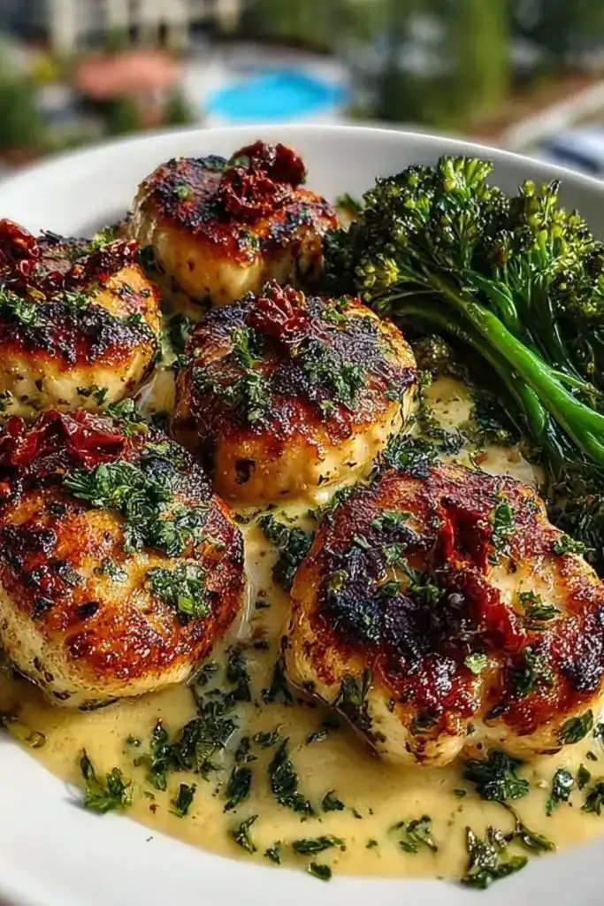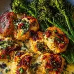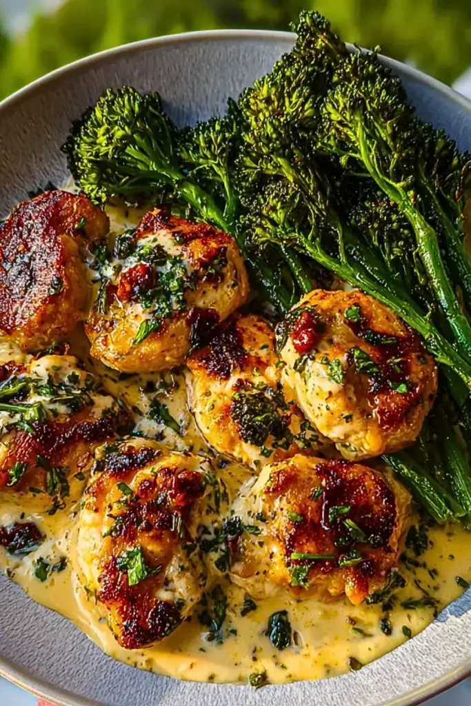 I love creating dishes that balance flavor, texture, and simplicity—and these Garlic-Parmesan Chicken Bites with Sun-Dried Tomato Cajun Alfredo & Charred Broccolini hit every note perfectly. I made this on a weeknight when I was craving something rich but not too heavy, savory with a little bite. The golden-seared chicken is tender and juicy, the sauce is creamy but bright from the sun-dried tomatoes and Cajun seasoning, and the broccolini is blistered just enough to add charred contrast. It looks gourmet but comes together surprisingly fast.