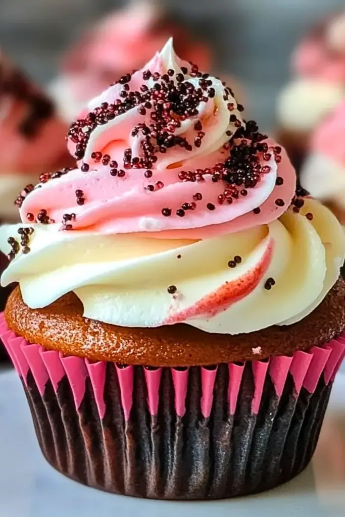 When I first dreamed up this recipe, I wanted something that could capture the rich flavors of my childhood — without spending hours in the kitchen. These cupcakes come together effortlessly, making them perfect whether you need a quick party treat, a sweet family surprise, or just a well-deserved personal indulgence. The combination of moist chocolate cake, swirls of vanilla and strawberry buttercream, and a sprinkle of chocolate pearls makes every bite unforgettable.