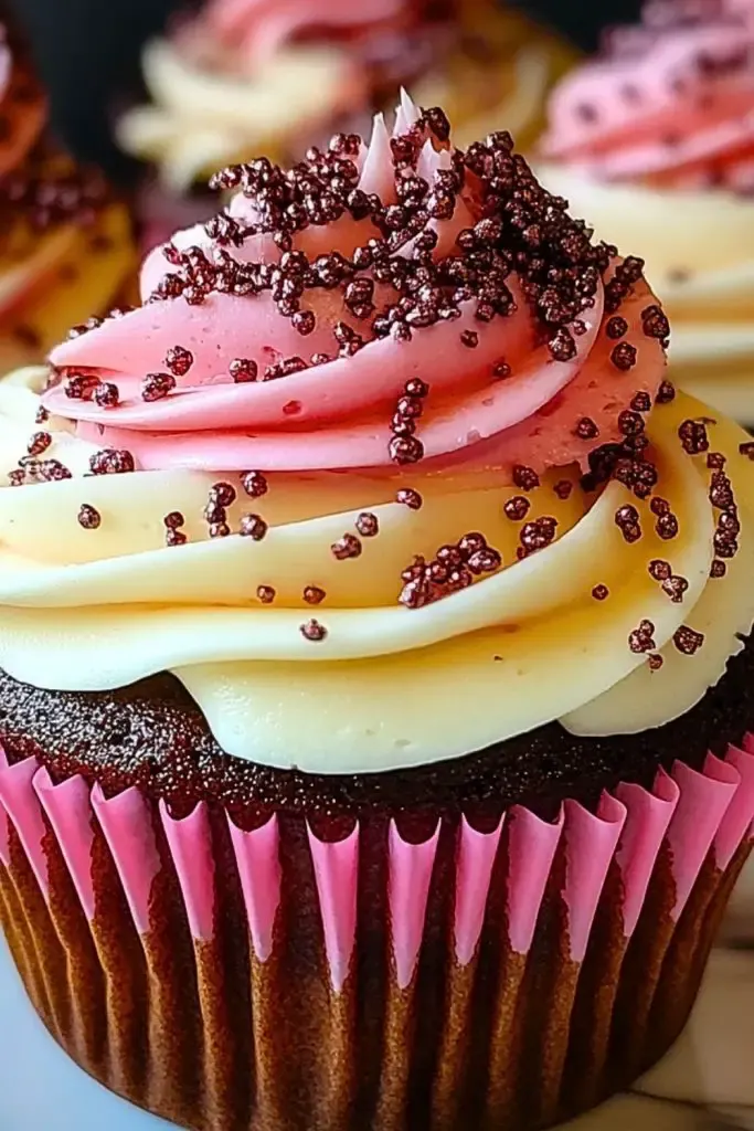 These cupcakes deliver not just in taste but also in appearance. You’ll love how the fluffy chocolate base melts in your mouth, how the luscious vanilla and strawberry buttercream dance together, and how the light sprinkle of chocolate crunch adds a playful texture. Plus, they’re simple enough to whip up even when you’re short on time — but they look like they came straight from a bakery window. Whether you’re new to baking or a seasoned pro, this recipe promises joy with every swirl and sprinkle.