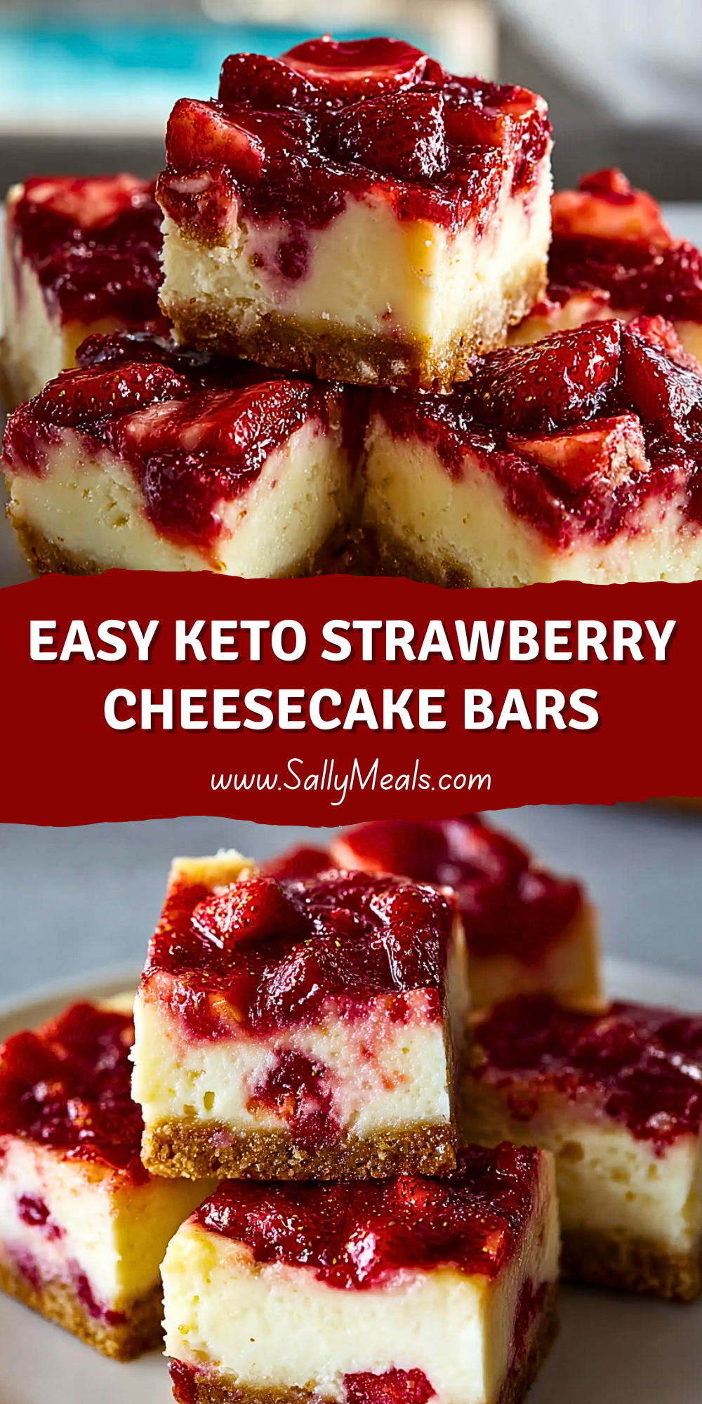Keywords: keto dessert, low carb cheesecake, strawberry bars, healthy snack, easy recipe