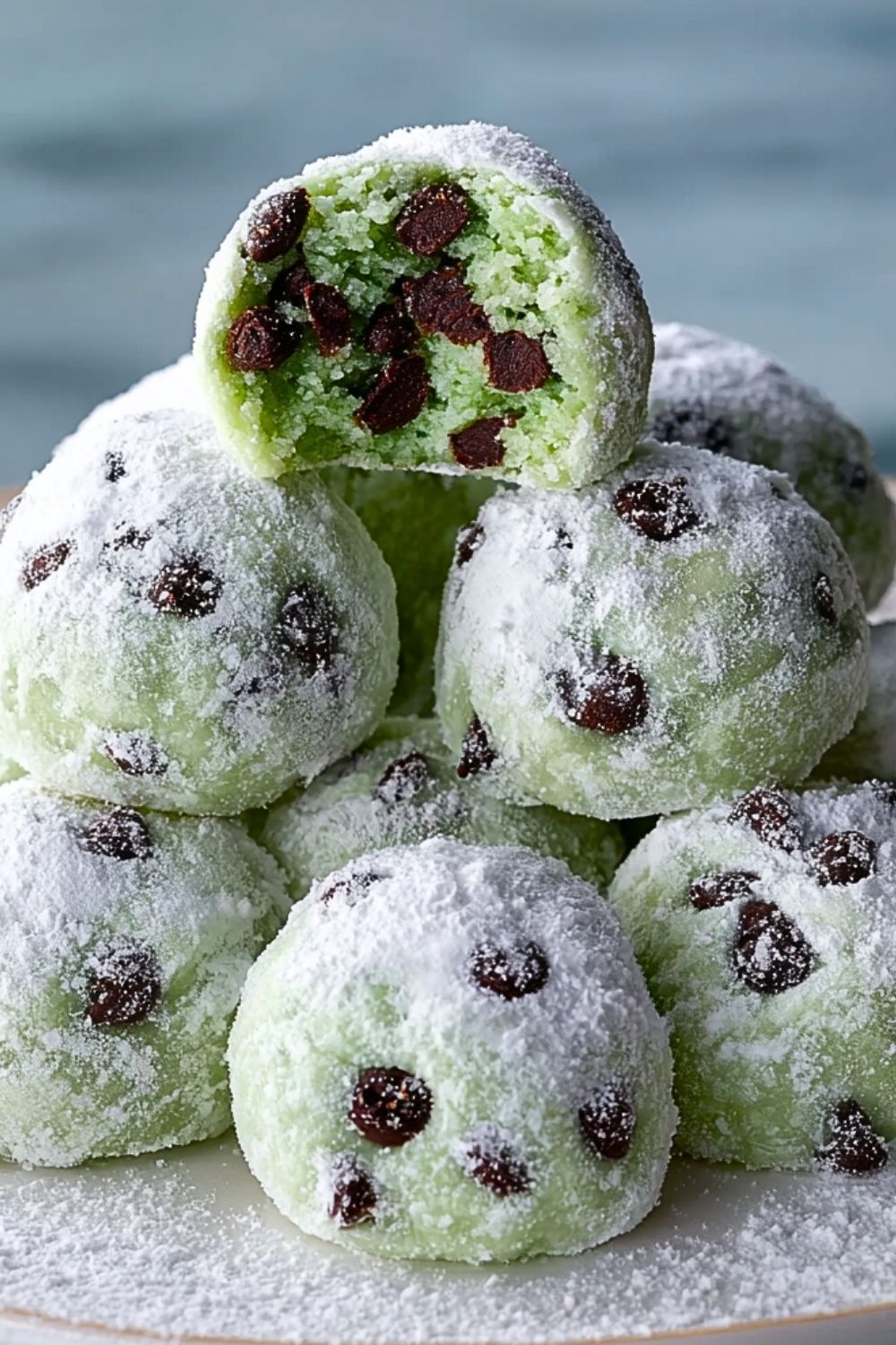 Easy Mint Chocolate Chip Snowball Cookies