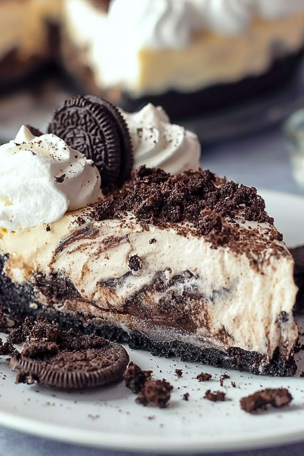 Store the Oreo pie in the refrigerator, covered tightly with plastic wrap or a fitted lid. It keeps well for up to 5 days, though the crust may begin to soften slightly over time. For longer storage, freeze the pie (without whipped cream topping) for up to 1 month. Let it thaw in the refrigerator for a few hours before serving. If garnished, add fresh whipped cream just before serving to keep it fluffy.