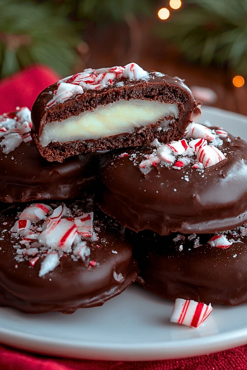Immediately sprinkle each chocolate-coated patty with crushed peppermint candy before the chocolate hardens. Let them set at room temperature or pop them in the fridge to speed things up. Once the chocolate is firm, they’re ready to enjoy!