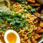 Start by pressing the tofu to remove excess water, ensuring a crispier finish when pan-fried. When making the broth, consider using a mix of vegetable broth, soy sauce, miso paste, and a splash of sesame oil for added complexity. Always cook your noodles separately from the broth to avoid clouding the soup or overcooking. Add vegetables like peas or spinach at the very end to keep them vibrant and fresh. Lastly, soft-boiled eggs (if using) should be cooked for exactly 6–7 minutes and then plunged into ice water for that perfect jammy center.
