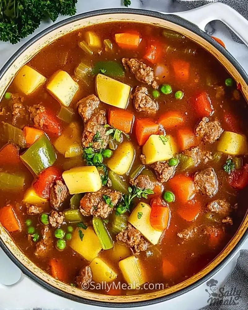 A hearty and comforting soup packed with tender beef, vibrant vegetables, and a rich, flavorful broth. This one-pot meal is easy to make and perfect for meal prep or a cozy dinner.