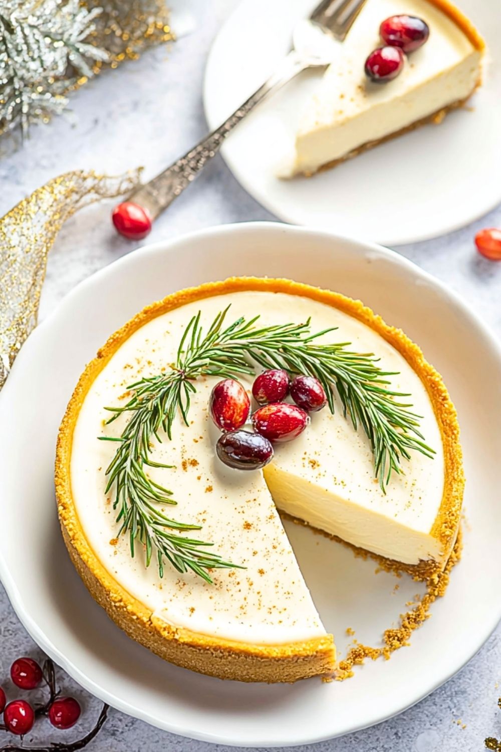 Pomegranate seeds & rosemary sprigs – Optional for garnish, but they turn the cheesecake into a true holiday showpiece.