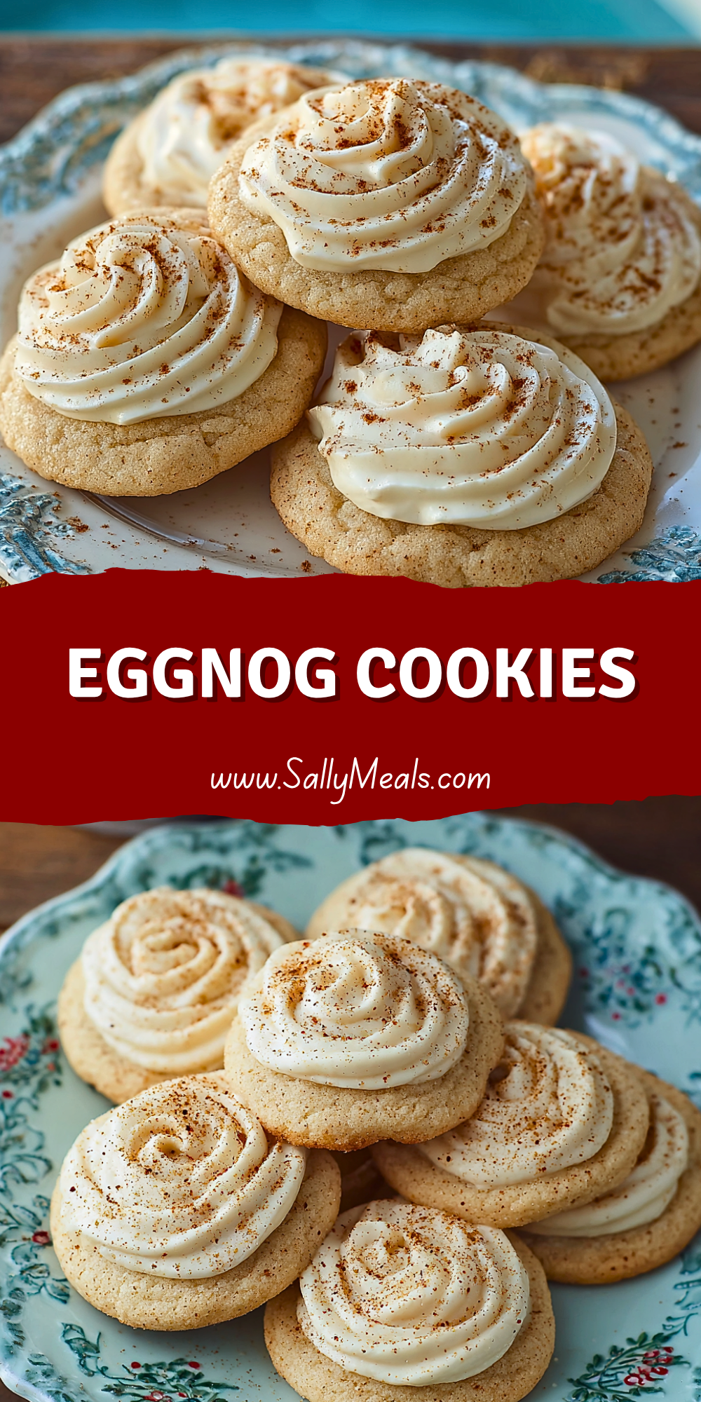 Bring your butter and eggnog to room temperature before mixing—this helps them combine more smoothly and creates a uniform dough. Don’t overmix once you add the dry ingredients; overworking the dough can lead to dense cookies. Use a cookie scoop to ensure uniform size, which allows for even baking. Once baked, let the cookies cool completely before frosting to avoid melting the icing. For an extra festive touch, dust a pinch of freshly grated nutmeg or cinnamon over the frosting before serving.