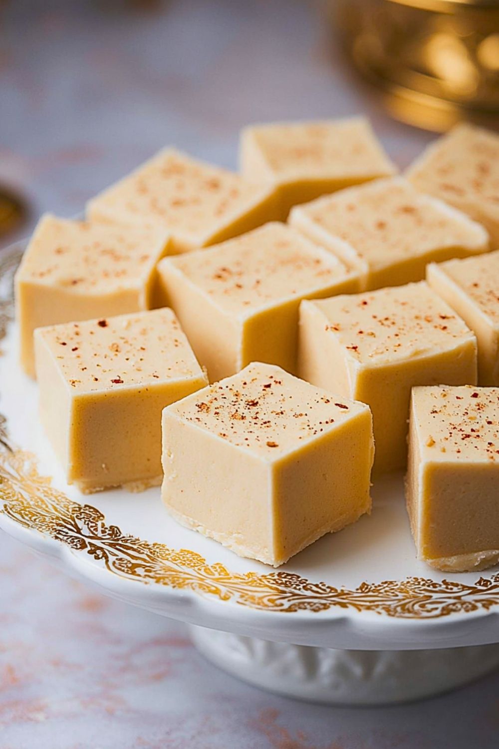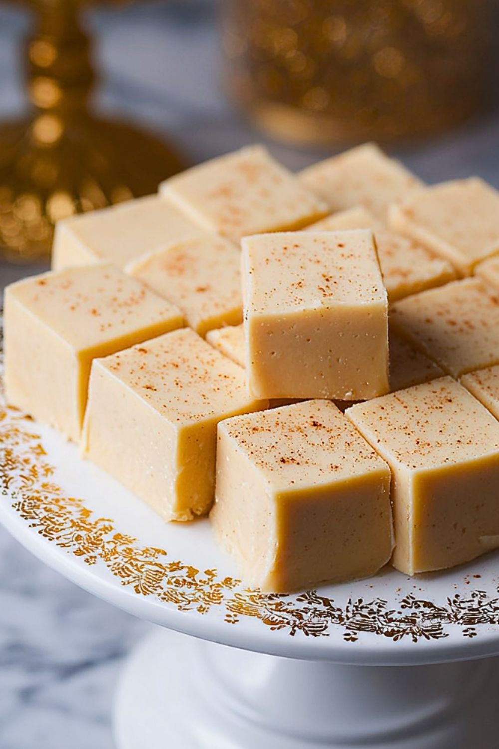 Cut the fudge into small squares using a sharp knife. For a festive touch, sprinkle a little extra nutmeg or even cinnamon on top before serving.