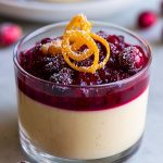 8. Once panna cotta is set and sauce cooled, spoon cranberry sauce over each portion.