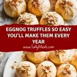 Keywords: eggnog truffles, holiday treats, no bake dessert, white chocolate truffles, easy Christmas candy
