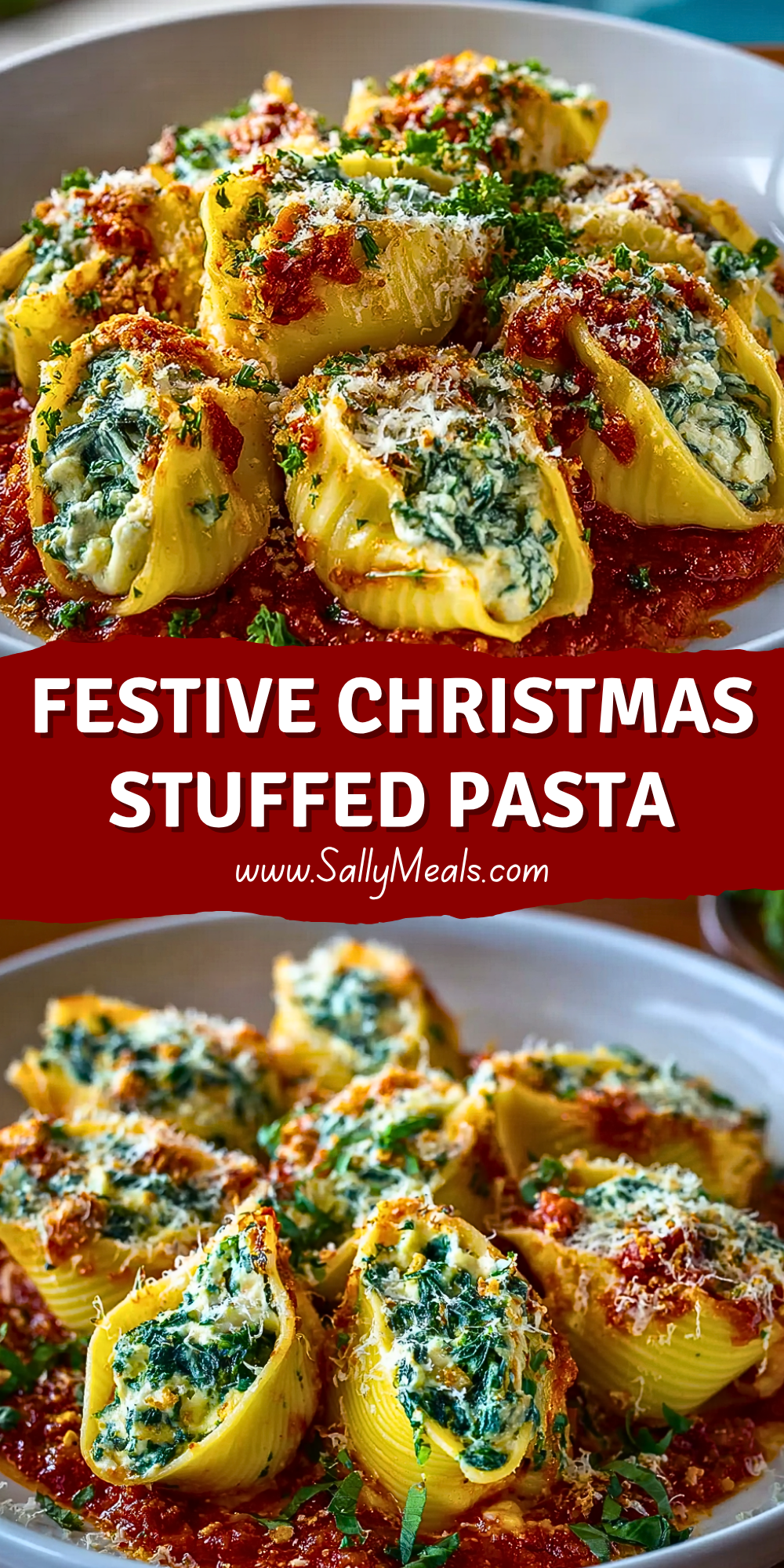 Keywords: festive pasta, Christmas dinner, ricotta stuffed shells, vegetarian holiday recipe, baked pasta