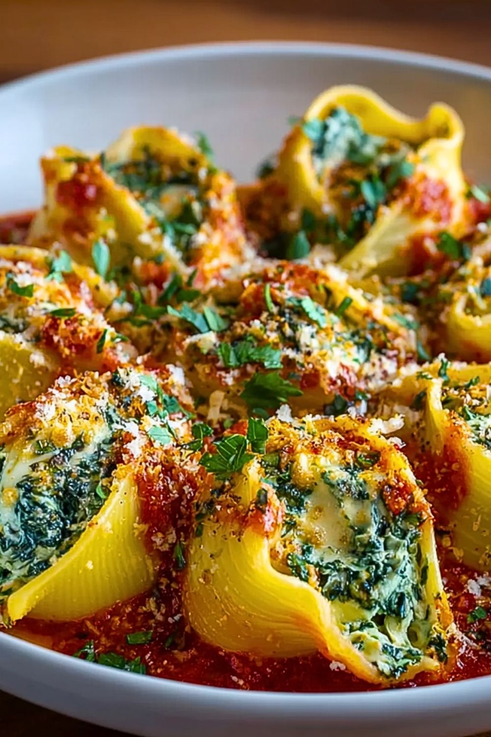 This recipe is the perfect combination of comforting and celebratory. The pasta is tender but holds up beautifully to the creamy spinach-ricotta filling. The marinara brings acidity and warmth, while a generous sprinkle of parmesan adds a salty, nutty finish. It’s a vegetarian option that pleases meat-eaters too and delivers that cozy feeling everyone craves during the holidays.