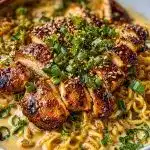 Fiery Chicken Ramen with Creamy Garlic Sauce is a fantastic dish to prepare when you want something comforting yet with a spicy kick. Whether you’re cooking for yourself or a group, this recipe will surely impress. The creamy garlic sauce, paired with the juicy chicken and tender noodles, is simply irresistible. Give it a try today, and enjoy a bowl of delicious ramen like no other!