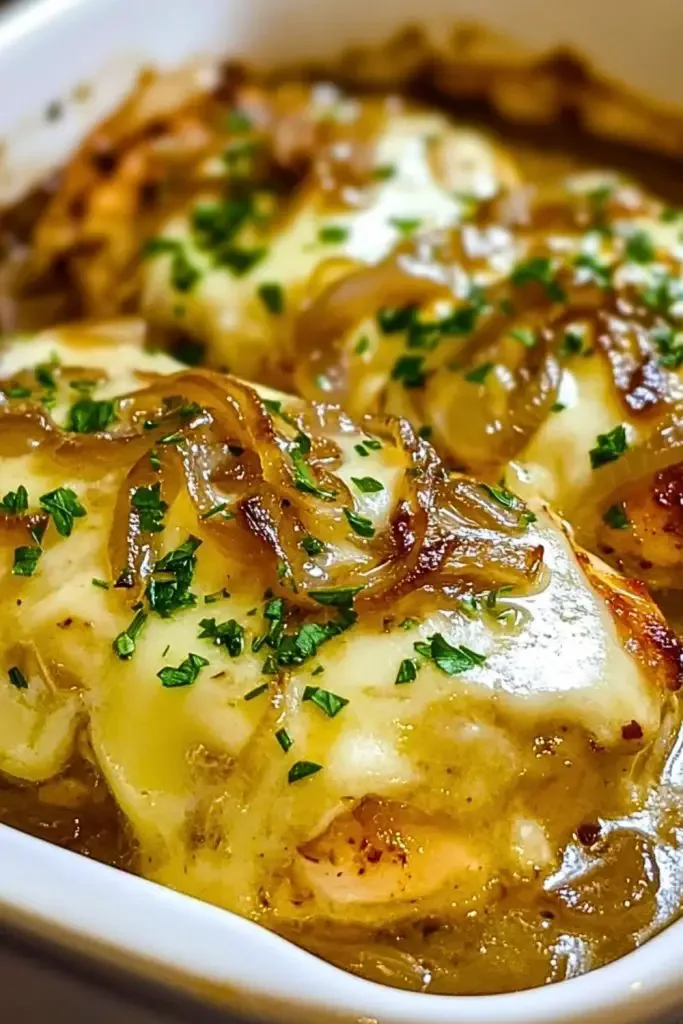 - Rich & Comforting: Combines the deep flavors of French onion soup with the heartiness of baked chicken.