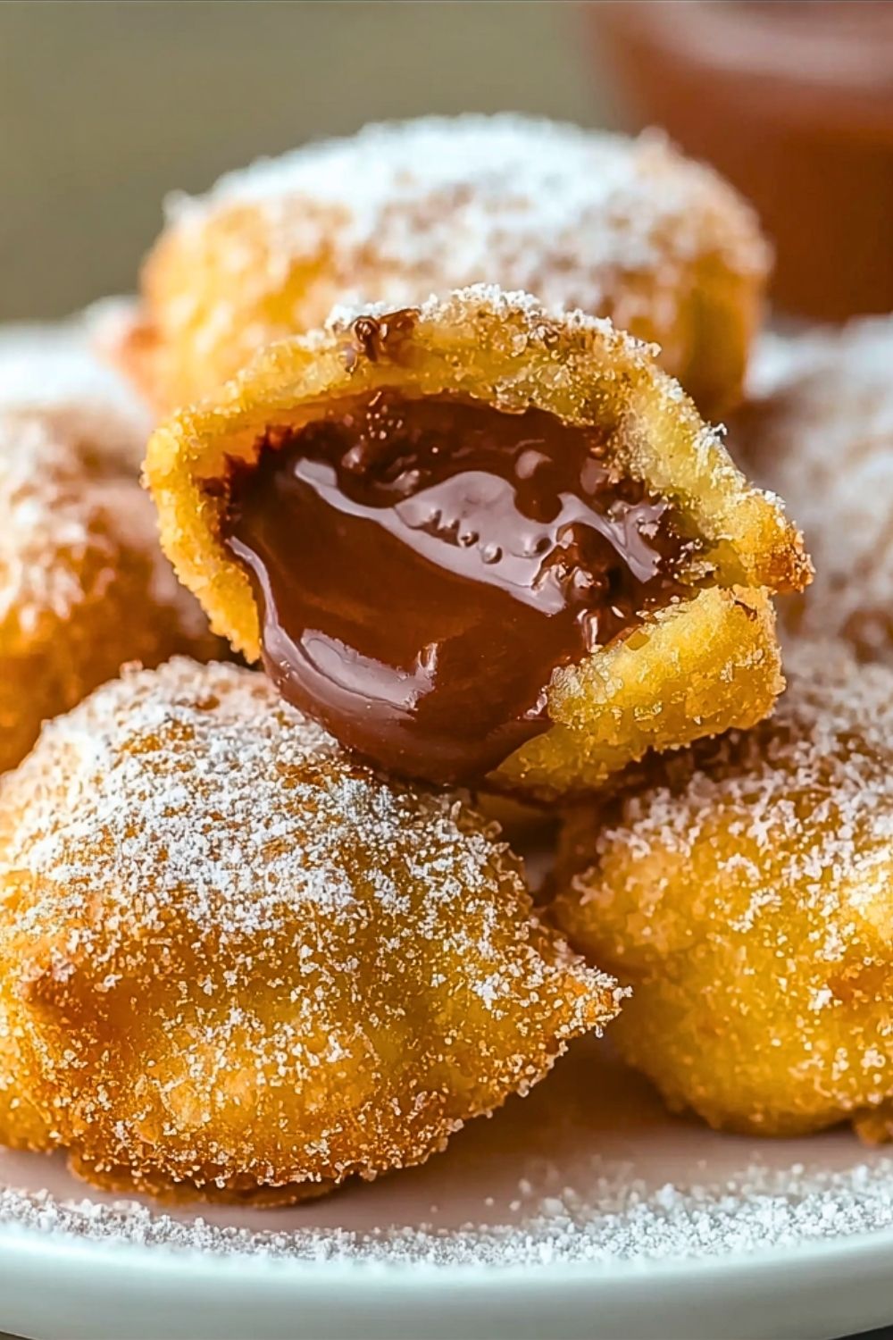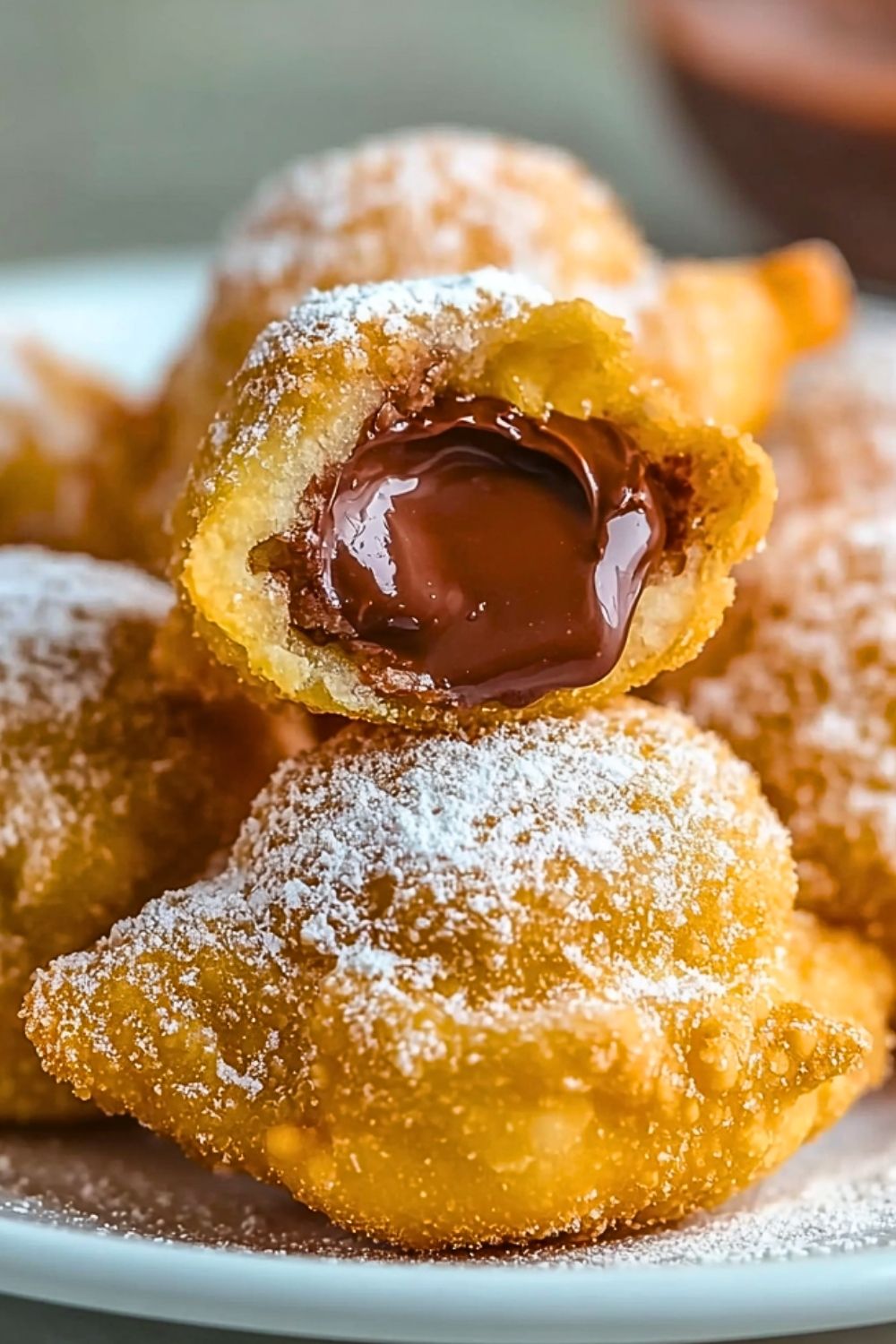 Before diving into the cooking, keep your Nutella chilled in the fridge or freezer for a few minutes. This helps it hold shape when wrapping and prevents leakage during frying. Always preheat your oil and keep a consistent medium heat to avoid burning the batter. Don't overcrowd the frying pan — it causes the temperature to drop and the dumplings to turn soggy instead of crispy. Finally, have your powdered sugar ready to sprinkle while they’re hot for that sweet finishing touch.