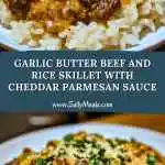 Garlic Butter Beef and Rice Skillet with Cheddar Parmesan Sauce